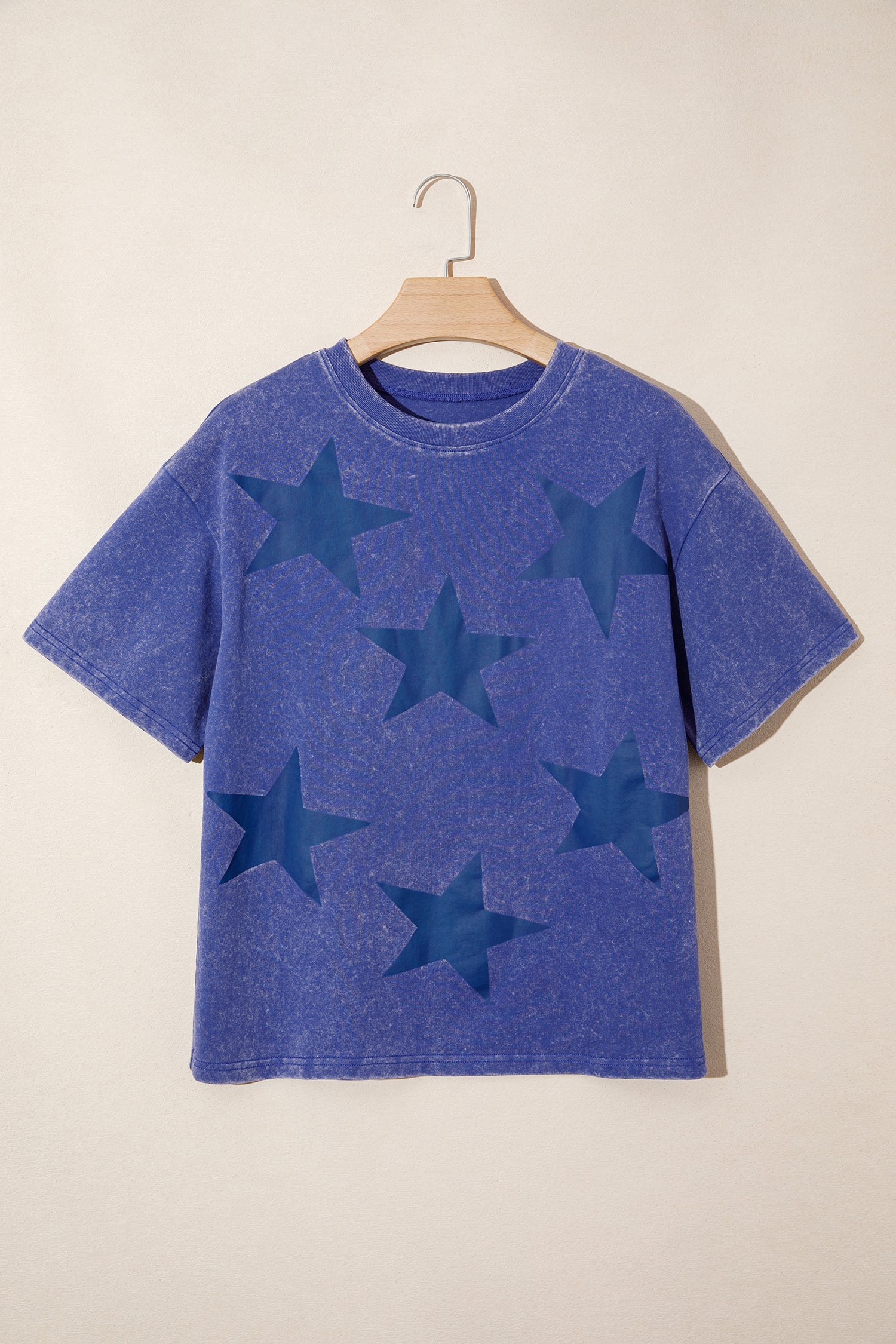 Blue Independence Day Star Printed Mineral Wash T Shirt